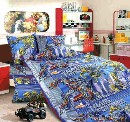 Яркие, красочные рисунки с изображением любимых героев мультфильмов трансформеры или спортивная тематика, такие как футбол, гонки, и городская дорога с изображением спец. машин. Цветовая гамма в синих или зеленых тонах. Ткань, из которой изготавливают эти комплекты 100% хлопок, гипоаллергенная, износоустойчива. Выдерживает большое количество стирок и сохраняет яркие краски рисунка.